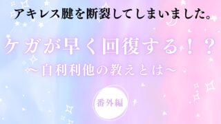 やっちまったケガが早く治る方法【自利利他の教え】アキレス腱が切れていまいました~番外編~ 6月末にアキレス腱を断裂して、7月に手術。8月は装具生活を経て、9月になった現在、何とか装具も外れて、まだまだリハビリ中ですが何とか両足で歩けるようになりました。 手術をして、装具が外れるまで約2ヶ月を振り返って・・・。 病院... 2025.10.11やっちまった明日好き言葉